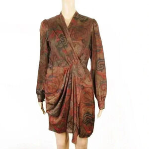 Vintage 90s Amanda Christine Red Brown Paisley Wrap Long Sleeve Boho Dress
