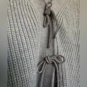 FRENCH CONNECTION Soft Sparkly Bow Embellished Cardigan In Light Grey
