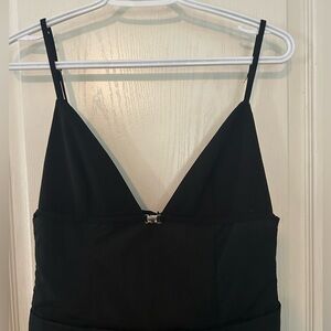 Chic black jumpsuit with sleek design. Ideal for versatile styling. New with tags. Size small - 14 inches from pit to pit and 60 inches from strap to hem. Adjustable straps. Fake fly. Side pockets. Belt loops. Super cute! Thank you for looking!