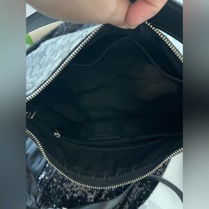 Stylish Coach shoulder bag with signature pattern. Features adjustable strap and sleek design.