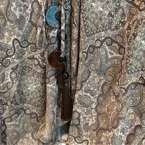 Empress Brasil Malaga Kimono India Print from the Empress Brasil Luxury Resortwear Collection is the ample beach kimono. The kimono comes in one size and is an easy cover up that fits any body type. The Malaga kimono ties in the front so you can close it securely with beaded tassel detail. Never worn and in excellent condition! NWOT.
