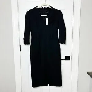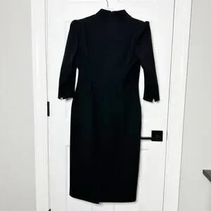 Karen Millen US 10/UK 14 Black Structured Crepe Pencil Midi Dress Career