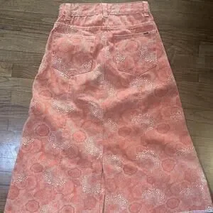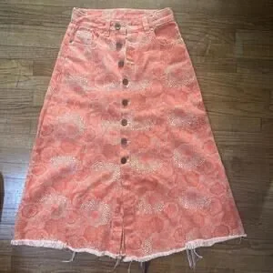 coral print, textured fabric, button front, front slit, raw hem, breathable cotton, boho style, coastal chic, Y2K minimal, summer skirt