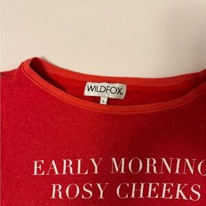 Vibrant red top with bold white lettering. Ideal for a relaxed look.