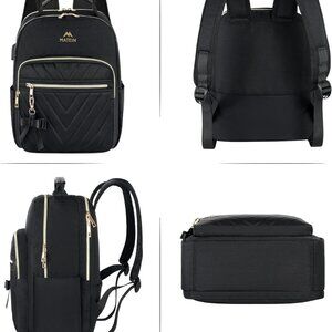 Features: Compact and trendy, this mini backpack offers a rectangular shape with a striped pattern and a cute bowknot detail. It has a soft shell exterior, water resistance, and an adjustable strap for a comfy fit. With 10 smart pockets inside—including a dedicated compartment for laptops up to 12.9 inches, plus space for cosmetics, keys, and more—it keeps everything organized. The built-in USB port makes charging devices super easy, and the luxe gold zippers add a chic touch.