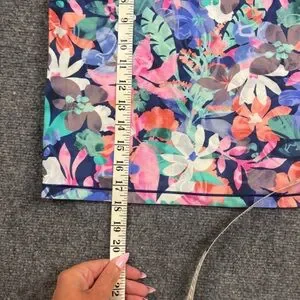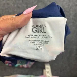 ATHLETA GIRL Mock Neck Rashguard Short Sleeve Blue Floral Swim Shirt size: Large
