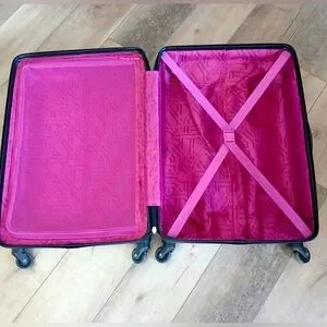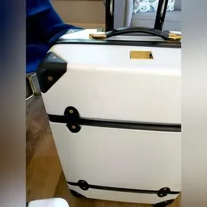 The luggage set is from the Diane von Furstenberg (DVF) Saluti Hardside Luggage collection.