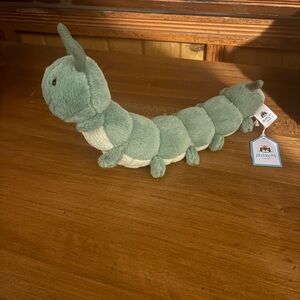 Charming caterpillar plush by Jellycat. Soft mint and cream colors. Perfect for cuddle and play.