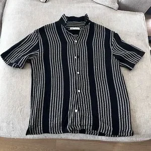Zara Knit Button Up Camp Shirt Mens Medium Black White SS Stripe