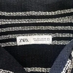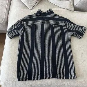 Stylish and lightweight knit camp shirt from Zara. This black and white striped shirt is perfect for a relaxed yet polished look. The knit texture and camp collar style make it an ideal piece for resort wear or a casual day out. A versatile wardrobe staple for the modern man.