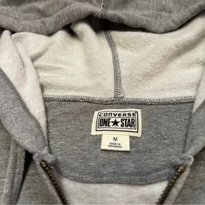 Stay comfortable and stylish with this classic Converse One Star hoodie. Crafted from soft, breathable fabric, this hoodie features a front zip closure, a cozy hood, and convenient pockets. Its versatile gray color and timeless design make it a perfect layering piece for any casual occasion.