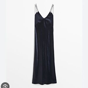 Massimo Dutti Super Dark Navy Satin Slip Dress