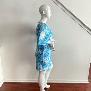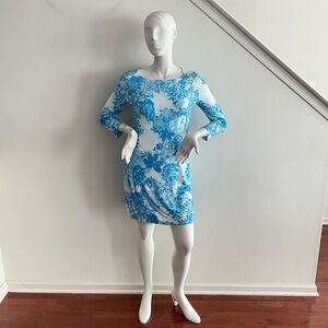 Lilly Pulitzer Blue Toile Me About It Sophie Dress White Long Sleeve UPF 50 L