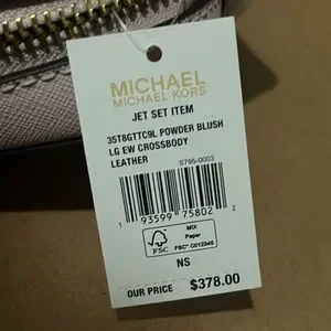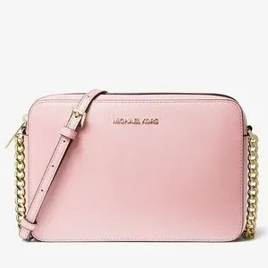 MICHAEL KORS- NWT Jet Set LG Crossbody Bag in Light Pink with MK Print. Gold toned details with 2 inside pockets. Color varies in lighting. Super cute bag, perfect accessory for any outfit
