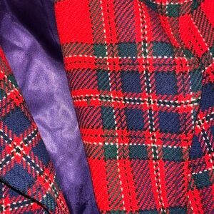 Eye-catching checkered blazer. Features vibrant red and black pattern. Ideal for a stylish statement.