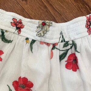 Hollister Floral Shorts White Red Flower Smocked Waist Boho BeachWear Size SM