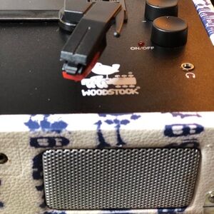 With its unique features and sleek design, the Crosley Record Player cr8005d-sbl Woodstock Edition is sure to impress both audiophiles and music lovers alike. Whether you're reliving your favorite memories or discovering new sounds, this turntable is a must-have for any vinyl enthusiast. This item is missing the handle, other than that everything works to perfection and it’s in mint condition. This item is a portable Record Player. It has the output to attach additional speakers.