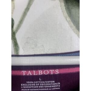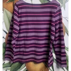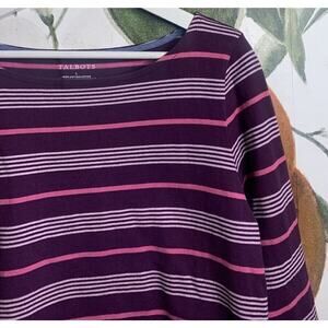 Talbots Large 100% Cotton Boatneck Striped Long Sleeve Shirt Burgundy Red