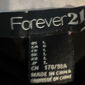 This Forever 21 dress in size L is a must-have for any woman's wardrobe. The long sleeve dress features a polka dot pattern, round neckline, and pullover closure. The knee-length dress is made of polyester and has a fit and flare style, perfect for any occasion. The dress is black with cream polka dots, adding a touch of elegance to any outfit. Add this dress to your cart today!