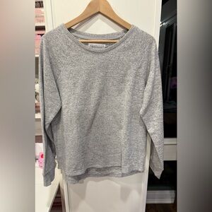 • Heather Gray Long-Sleeve Pullover Top with a relaxed fit.