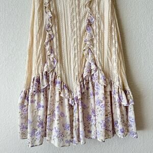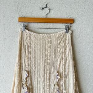 FREE PEOPLE Now & Then Maxi Skirt Cream Floral Lace Ruffled Cottagecore