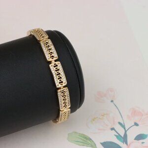 Elegant rose gold bracelet featuring rectangular links accented with shimmering stones, offering a luxurious and modern look.