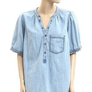 Anthropologie Pilcro The Aly Denim Puff-Sleeve Blouse Top Cotton 1X New 282557
