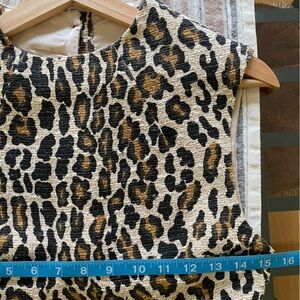 Super cool women’s Alice & Olivia Leopard Print Coco Cutout Mini Dress. Sleeveless - mock neckline - exposed back zipper and button closure - cutout detail on back - fully lined