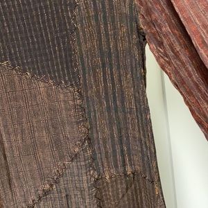 Wear as a dress or over slacks for Thanksgiving gathering. 35” from shoulder down to hem. It’s such a fun dress, especially with some funky jewelry. Never worn, always a bit small:( Great fall colors. 18” armpit to armpit