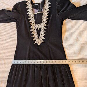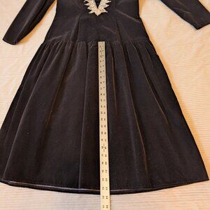 VINTAGE 1980s black velvet drop waist cream lace formal dress dark academia EUC