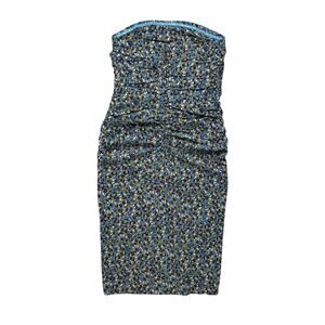 BY ANTHROPOLOGIE *NEW* Soleil Slim Strapless Ruched Dress Blue Motif Floral XL