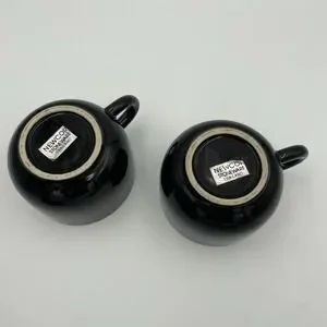 Set of 2 vintage Newcor Stoneware glossy black coffee/tea cups