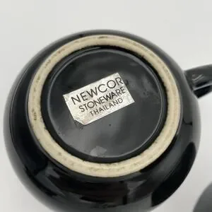 Vintage Newcor Stoneware 8oz Glossy Black Coffee/Tea Mugs Set Of 2, Thailand
