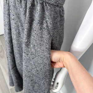 Prophecy Vintage 90s Tweed Pleated Button Waist V Neck Fit & Flare Dress in Gray