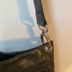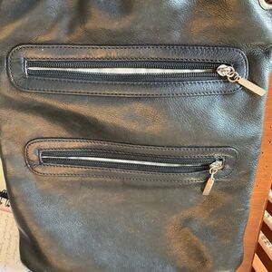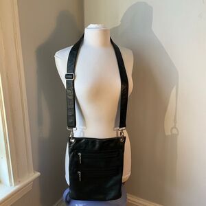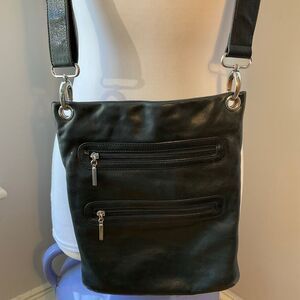 Margo Black Leather Purse. Supple leather, silver hardware. Two Zip front Pockets, zip closure. Inside zip pocket and slice pockets. Super soft, very roomy! 12”x10”. Adjustable Strap Drop 20”. #rockandroll #leatherbag #crossbody