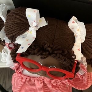 This cutie AA girl comes dressed in a vibrant red gingham shoulder-tied outfit and stylish red glasses. Glasses and shoes are 3d printed. Does not have birth certificate. Great used condition.
