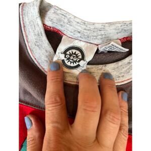 The Vintage 80s Graphic Print Champion O Boy Kids Sweatshirt in size 7 is a colorful and playful addition to any boy's wardrobe. Made from a blend of polyester and cotton, this pullover sweatshirt features a crew neck and long sleeves, making it perfect for casual occasions in the winter, fall, or spring. The graphic print of the logo and "O Boy" slogan adds a nostalgic touch, while the regular fit ensures comfort and ease of movement. Machine washable for easy care, this Champion sweatshirt is a classic choice for young boys who love 80s-inspired fashion. Excellent Condition- one small spot on waistband shown in picture.