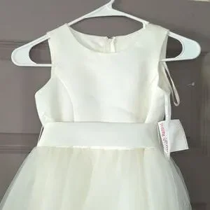 davids bridal, flower girl dress size 7, NWT, zip back with faux button up, satin removable bow, layers of tulle SO PRETTY. great for classic style wedding