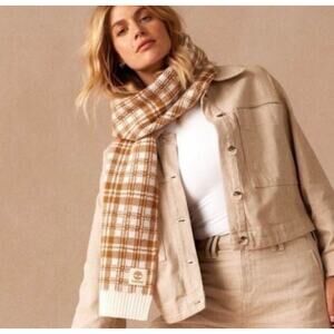 Timberland Scarf Buffalo Plaid Beige Off-White FabFitFun Fall 2023 10" x 68" $60