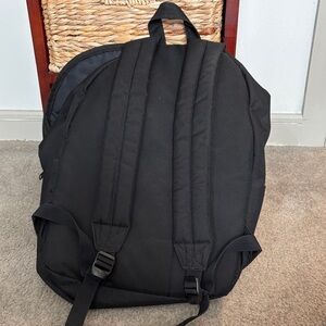Sleek black design. Spacious main compartment. Front zip pocket for easy access. Comfortable shoulder straps.