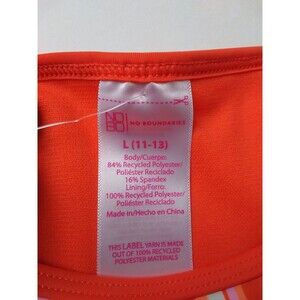 No Boundaries orange swirl designed two piece bikini swimwear. Top has adjustable straps, light padding and underwire. New with tags