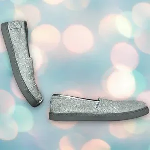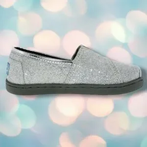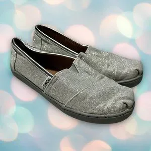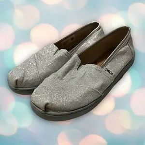 TOMS Girl’s Silver Glitter Slip On Sneakers Shoes Size 3.5