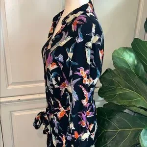 Maeve by Anthropologie Colorful Birds Black Dress Size 12P