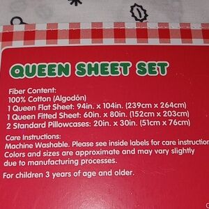 Charming Hello Kitty Christmas queen sheet set. Includes flat sheet, fitted sheet, and pillowcases. Delightful design for fans.