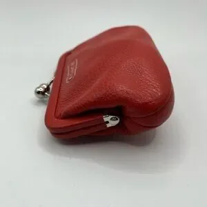 Authentic Coach Orange/Red Leather Kiss Lock Change Purse.