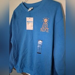 Nike Men's Crew Neck Sweatshirt Photo Blue Orange Size Medium Smile Sunshine