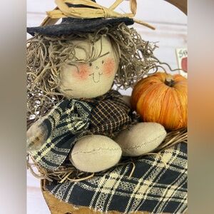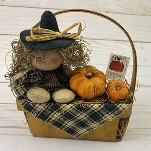 Vintage Country Halloween Decor Basket Witch & Pumpkins Hand Crafted Spooky Fall