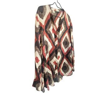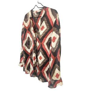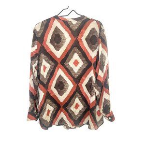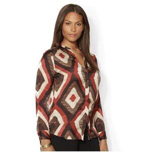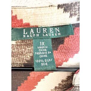 Lauren Ralph Lauren 100% Silk Top Womens 1X Brown Brick Red Aztec Southwestern