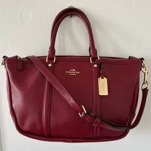 Beautiful Like-New Red Coach Purse With Crossbody Strap Pebble Leather Handbag