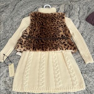 Leopard Print Faux Fur Vest with Cream Knit Dress NWT l S 5/6